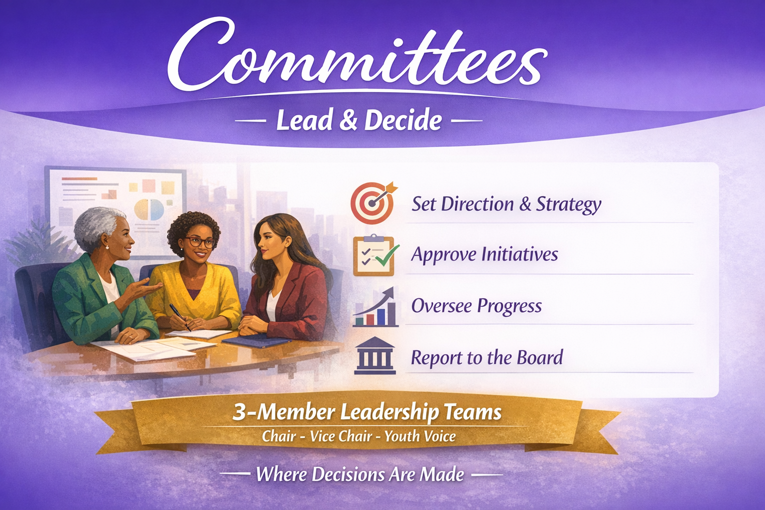 👉 Explore Committees 🟣 Committees (Lead & Decide) Membership qualifies you to be considered for leadership roles and governance pathways.